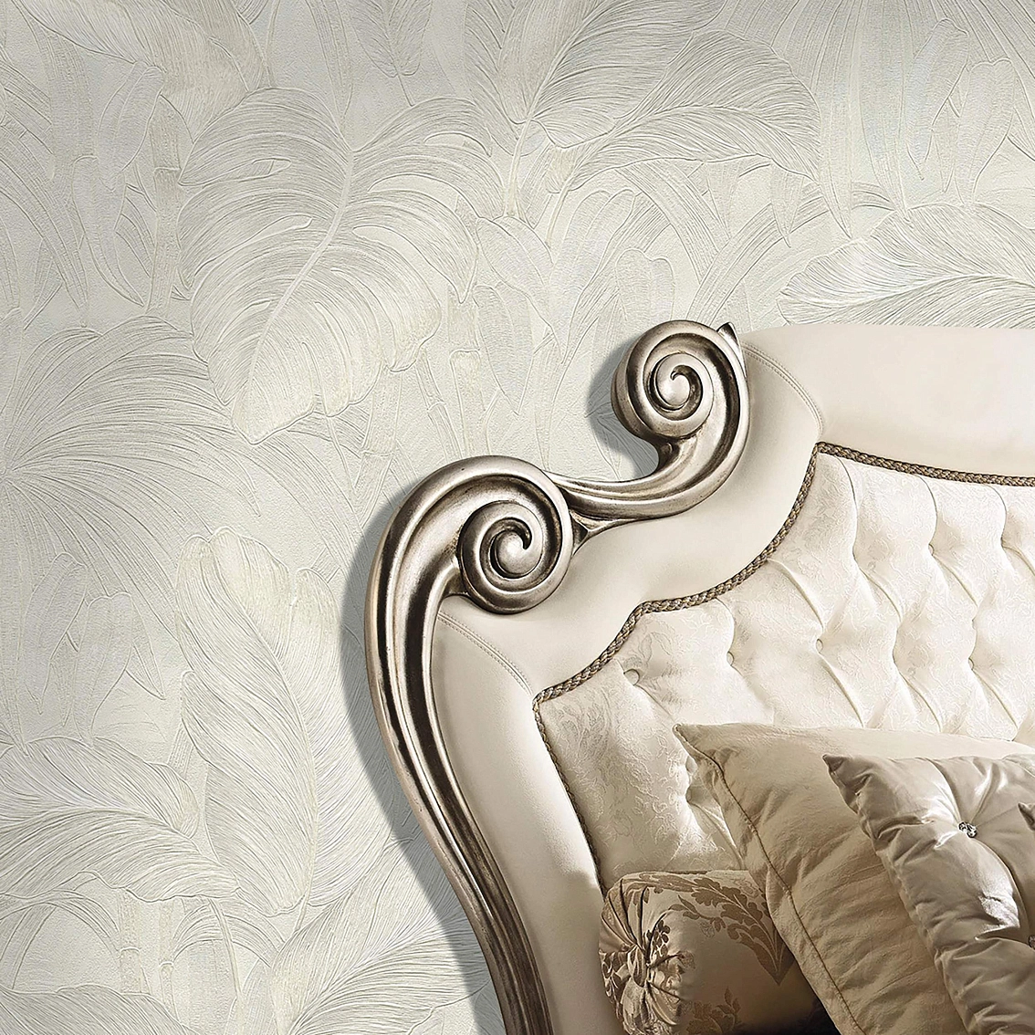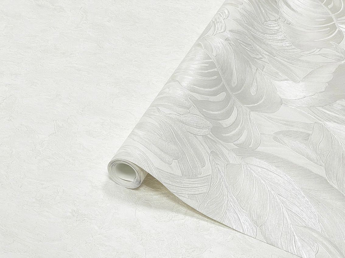 Дизайнерские обои с рисунком листьев Voyage прекрасно подойдут для оформления стен в гостиной, спальне или кабинете. Цветовая гамма в основном белая, что делает обои универсальными и легко сочетаемыми с другими элементами декора. Размер рулона 1,06*10,05 метра обеспечит вам достаточно материала для оформления большой площади.