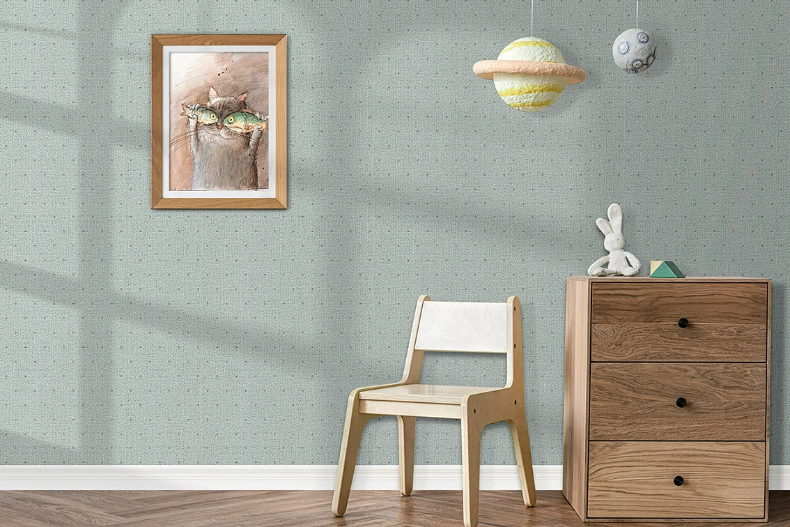 Коллекция Happy Bunny от бренда Solo отличается стильным дизайном и современным подходом к оформлению помещений. Голубой цвет обоев создаст атмосферу уюта и комфорта, а сэты номенклатуры с узором горошка добавят интерьеру изюминку и оригинальность.